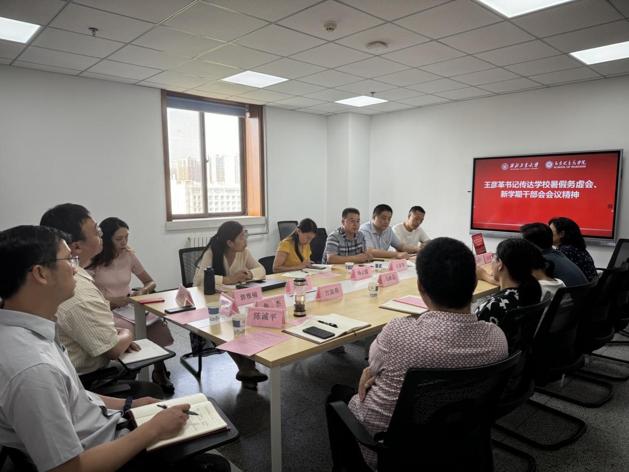会议首先,由王彦革介绍了学校暑期务虚会暨新学期中层干部会召开情况。与会人员集体深入学习了李言荣书记、宋保维校长在会上的讲话,就贯彻落实工作进行安排部署。