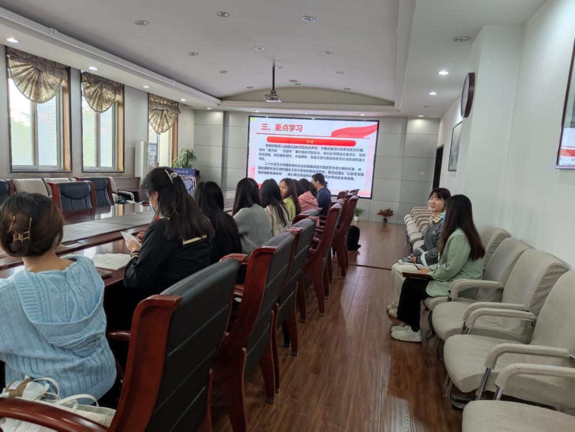 本次学习还从党的二十大报告的关键词和高频词中深入学习党的二十大精神。“发展”、“人民”和“安全”是报告全文中出现频率非常高的三个词,党的二十大报告指出,高质量发展是全面建设社会主义现代化国家的首要任务。发展是党执政兴国的第一要务。“坚持人民至上”体现了我们党的性质和宗旨,我们党是为人民服务的,党的理论是为了人民、造福人民的理论,我们党的主要任务就是组织带领人民群众为实现美好生活而奋斗。报告还从统筹发展和安全的战略高度对国家安全做出新的部署,提出“以新安全格局保障新发展格局”,体现了这三个高频词的内在联系。